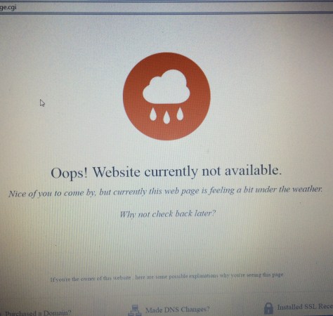 NO SUCH LUCK! I went to my page and it said the site is being hosted by SiteGround but not available. Ugh! This is a nightmare. After searching through many forum posts on WordPress, I finally found the solution, I think. The problem is, it says it can take up to 72 hours to change. It amazes me how quickly it works to switch out of WordPress but to try to go back to WordPress, it may take up to 72 hours. During the time I spent typing this, I went back to look and I am still getting this image when I type my page: